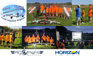 Each summer they hold a camp in which youth between the ages of 11 and 17 receive 3 days of free professional RC flight training, an Academy of Model Aeronautics membership, training manuals, and whenever possible, a ready-to-fly AeroScout trainer to take home.