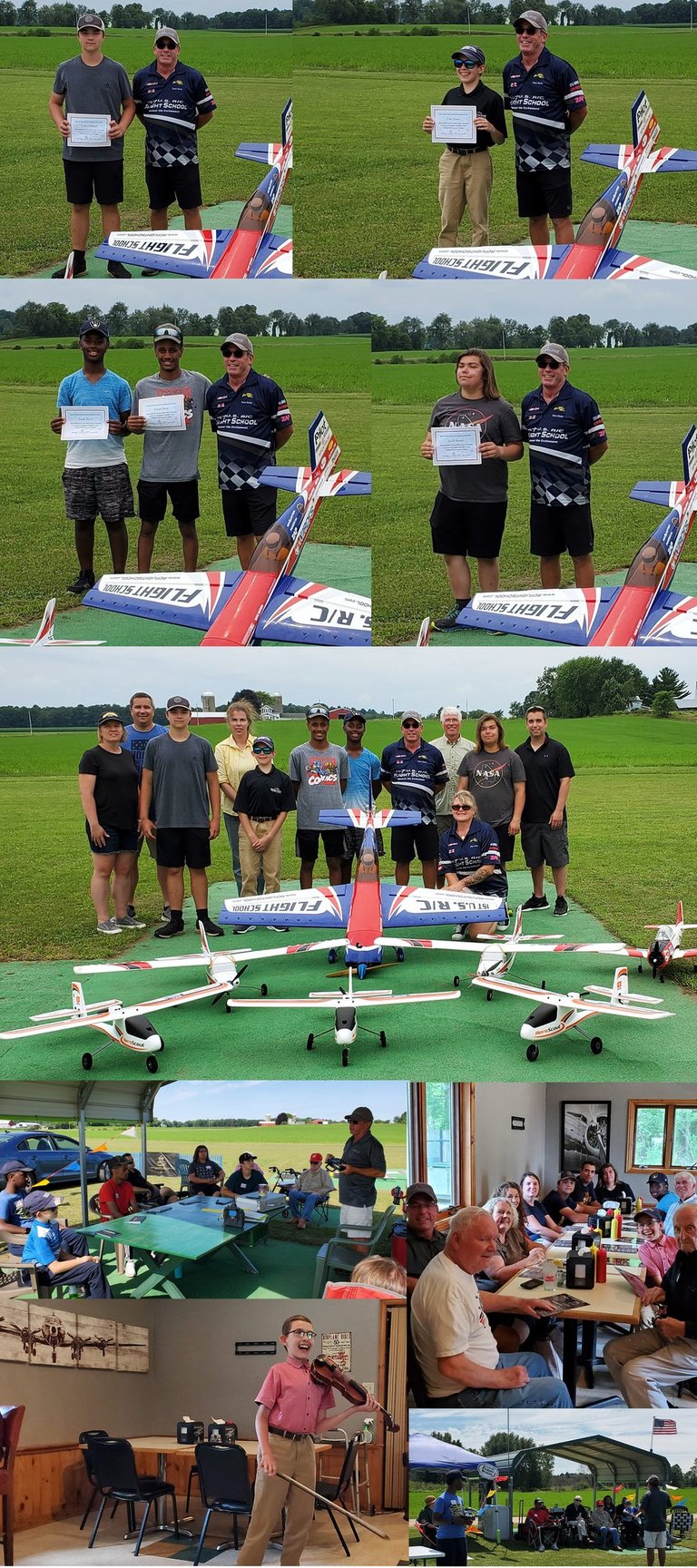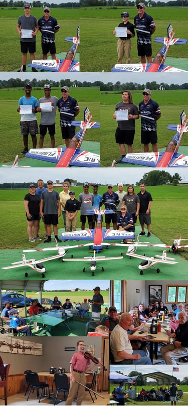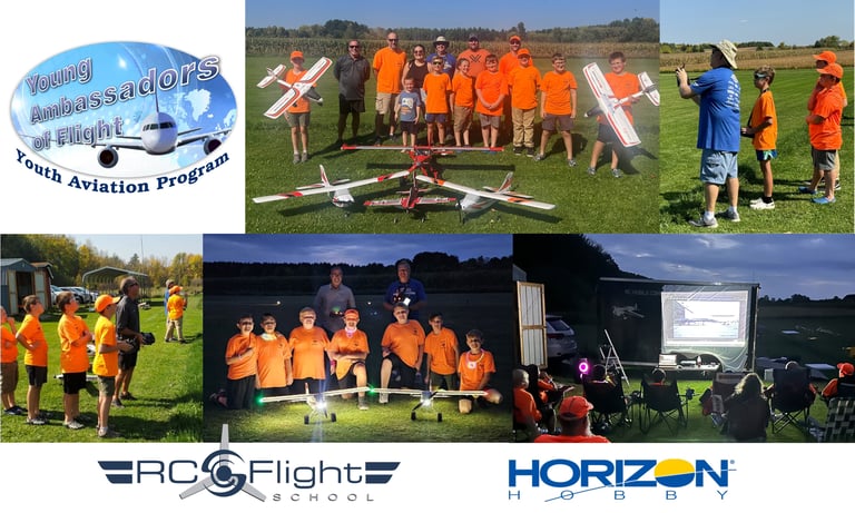 The inaugural (2022) Young Ambassadors of Flight training camp was a tremendous success. The 3 beginning students soloed an astonishing 25+ times over the course of the 3 days in 10-15 mph direct crosswinds, whereas the two aspiring show pilots and ambassadors for the sport claimed they learned more in the first 2 days than they had over the past 3 years! A few full-scale aviation VIP’s were also in attendance to provide additional inspiration to the young people. One of the students even treated all to a virtuoso violin performance during one of our after class meals at the local airport diner. 1st RC Flight School hopes to conduct more classes this year aimed at youth who would otherwise not be able to enter our wonderful sport. We want to especially thank our title sponsor whose support enabled several youth to realize what they are fully capable of.